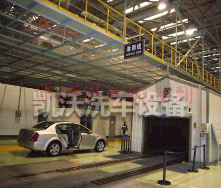 汽車天窗淋雨試驗線系統(tǒng)主要有噴淋系統(tǒng)、控制室、控制臺、過濾池、清水池,以及噴淋系統(tǒng)、污水處理系統(tǒng)、自動補水系統(tǒng)、安全保護裝置等組成。噴淋系統(tǒng):由負壓貯水罐、水泵、閘閥、電磁閥、主管路、分支管路、可調角度的不銹鋼噴嘴等組成。