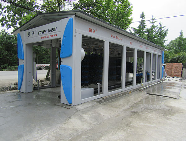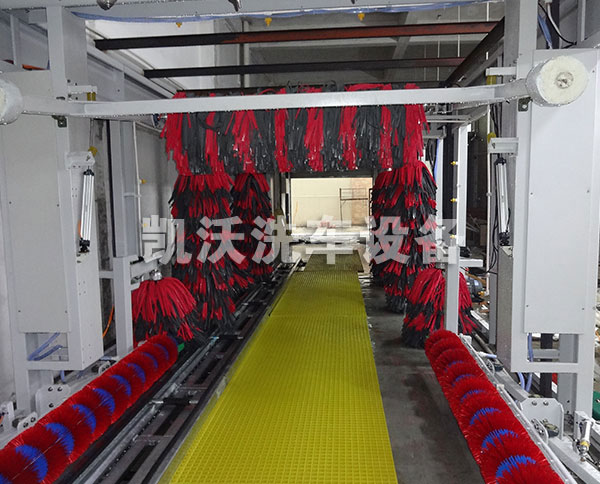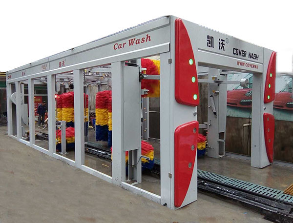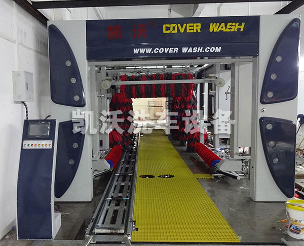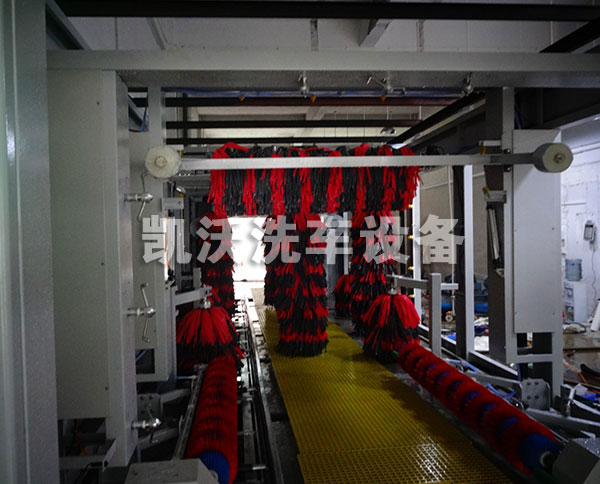 凱沃隧道連續(xù)式電腦洗車機主要用于轎車、越野車、小型面包車、箱式等車輛的外表進行高壓水沖洗、清洗劑洗、刷洗、蠟洗、風干和拋光作業(yè)。當車輛被輸送機送入洗車房后,首先由擺動式高壓水刀完全沖掉附于車體上的微小砂礫及灰塵;再經(jīng)噴淋發(fā)泡清洗液和多組洗車機專用刷滾對車輛表面及輪轂作多角度包裹清洗;經(jīng)高壓風干后,再由三組特柔拋光刷作擦拭,使汽車表面更加光亮如新。