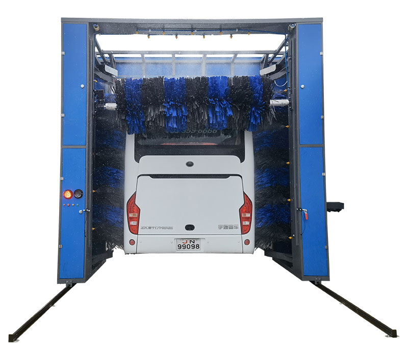 巴士洗車機的產(chǎn)品特點:牽引系統(tǒng)自動行走、自動返程、自動停止控制系統(tǒng);側(cè)刷自動張開和收縮,正反轉(zhuǎn)自動切換控制系統(tǒng);橫刷自動升降、正反轉(zhuǎn)自動切換控制系統(tǒng);.噴射系統(tǒng)自動噴射液體;故障報警、自動停機控制系統(tǒng)。