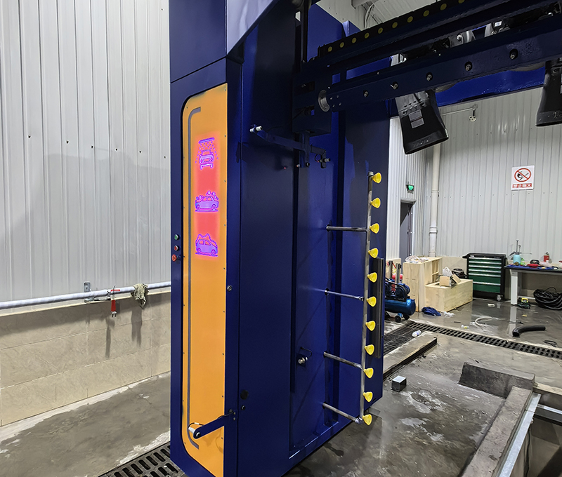 側(cè)噴,根據(jù)車輛寬度可調(diào)整洗車寬度進行高壓噴洗