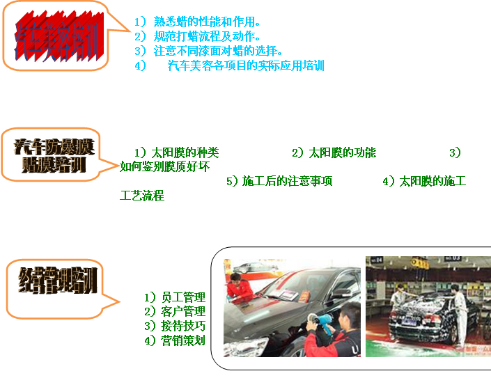 技術(shù)——始終將汽車(chē)美容養(yǎng)護(hù)各項(xiàng)新項(xiàng)目、新業(yè)務(wù)、新技術(shù)積極主動(dòng)地向合作客戶(hù)推廣。